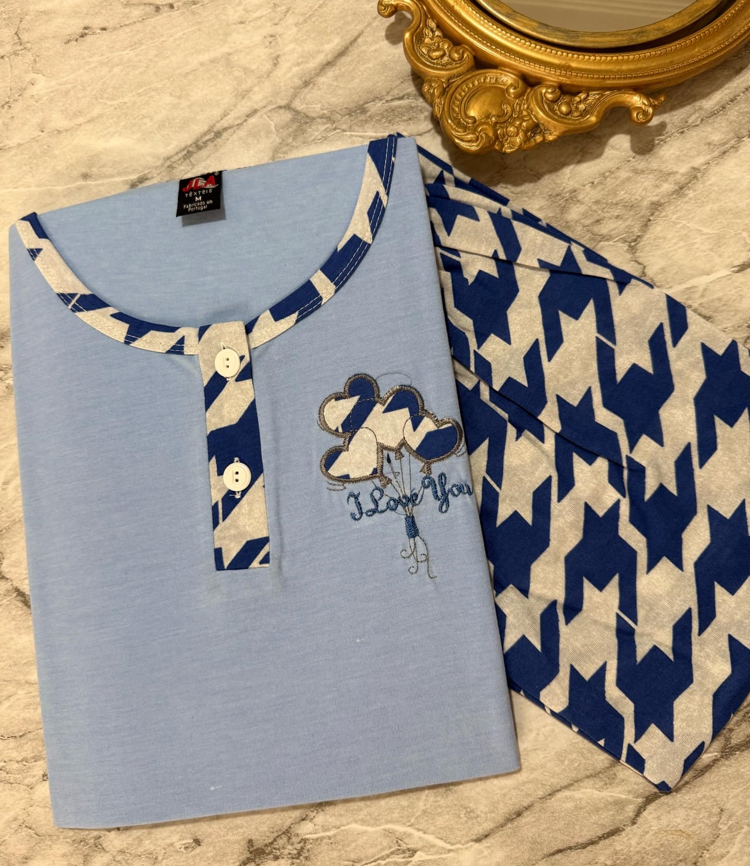 Pijama de Senhora Sem Carda; Pijama Com 2 Botões e punho na calça;
